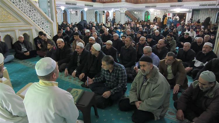 Yatsı namazını müteakip gerçekleşen programda İl Müftüsü Ahmet Durmuş, gecenin anlam ve önemine dair sohbet gerçekleştirdi.